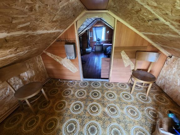 Дом из бревна, фундамент ленточный , крыша из металлочерепицы, окна пластиковые, биметаллические радиаторы. В доме веранда, прихожая, кухня и 2 комнаты.
