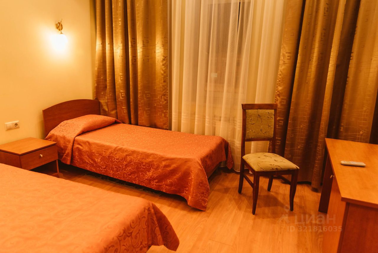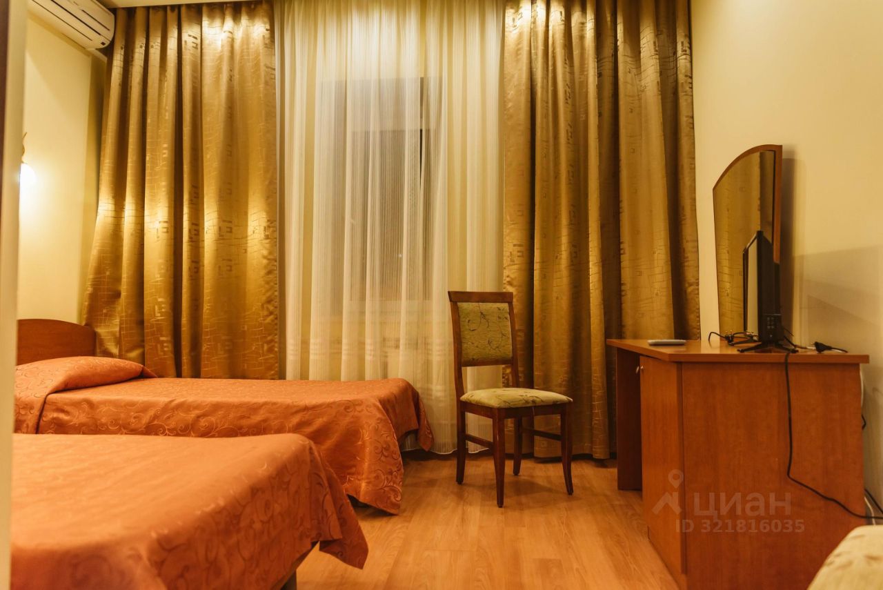 Комната: 2 одноместные кровати, тумбочки прикроватные, туалетный столик, телевизор, холодильник, шкаф, кондиционер.