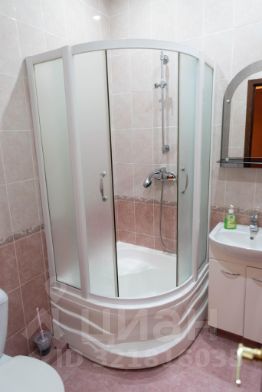 Туалетная комната: душевая кабина, фен, туалетные принадлежности.