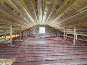Перекрытия потолка - деревянная балка, армированная пароизоляция, утепление потолка - 200 мм.